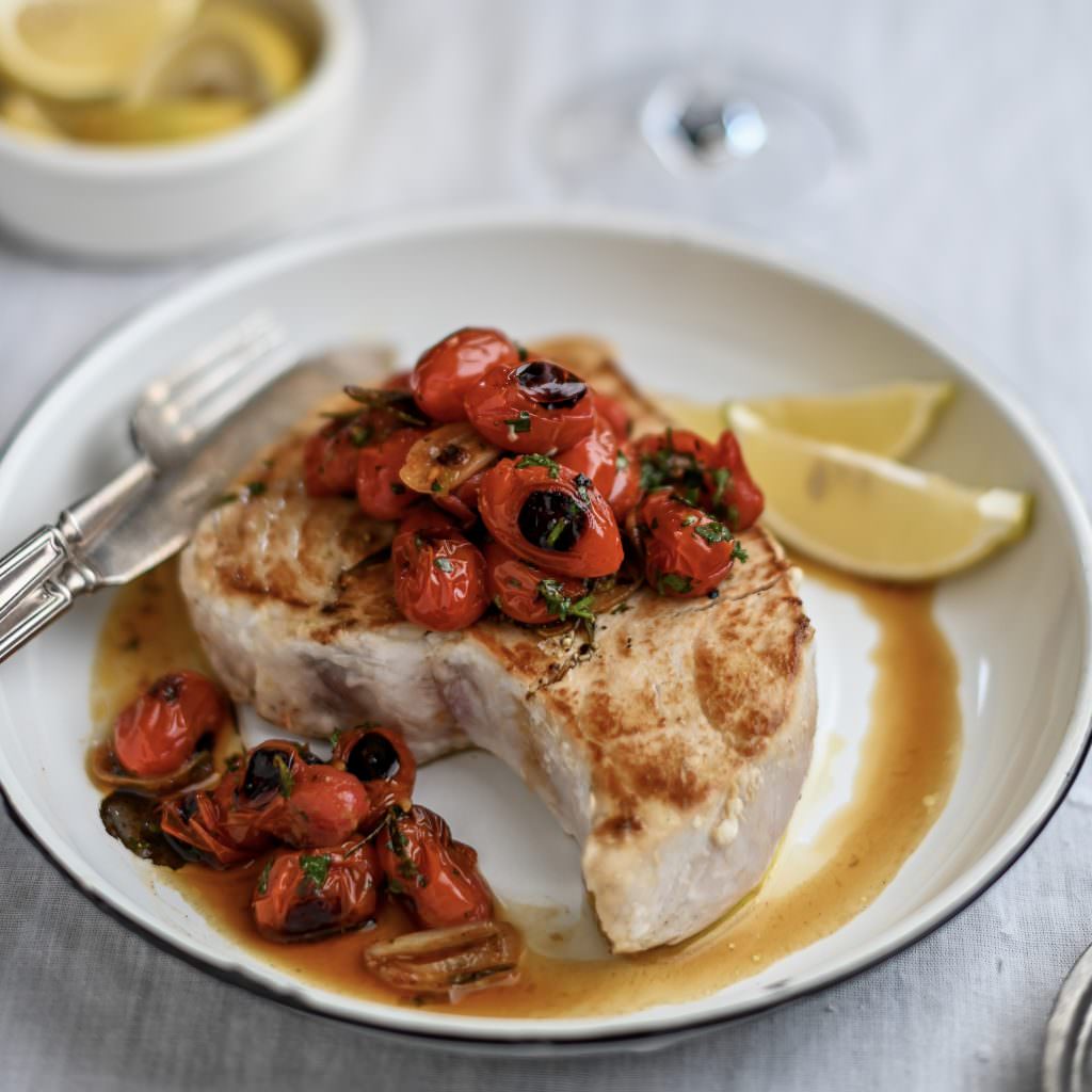 Grilled Swordfish with Charred Cherry Tomatoes