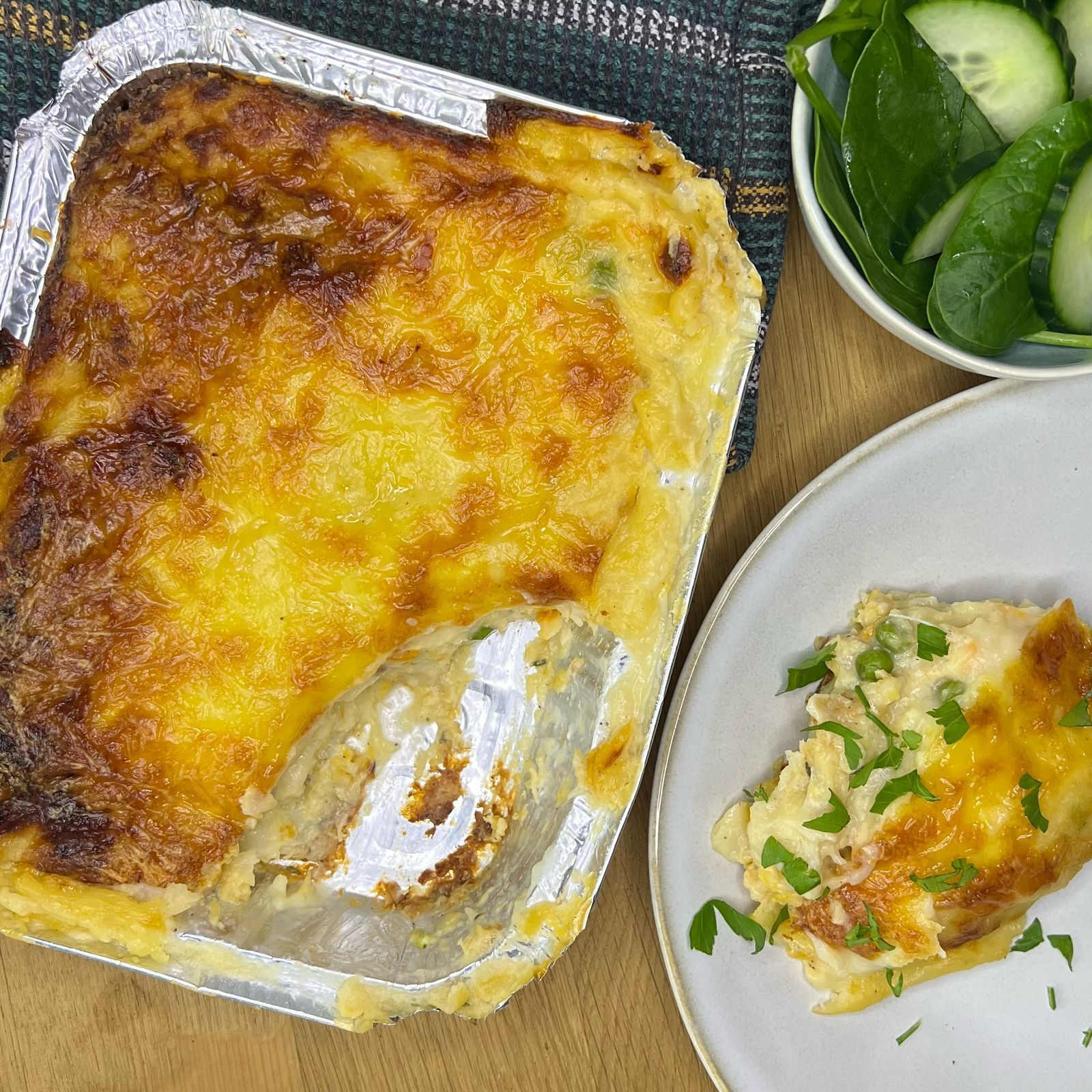 Ingredients: Haddock, Hake, onions, cow’s milk, potatoes, cornflour, peas, cheddar cheese, butter, olive oil, thyme, bay leaves, sea salt & black pepper